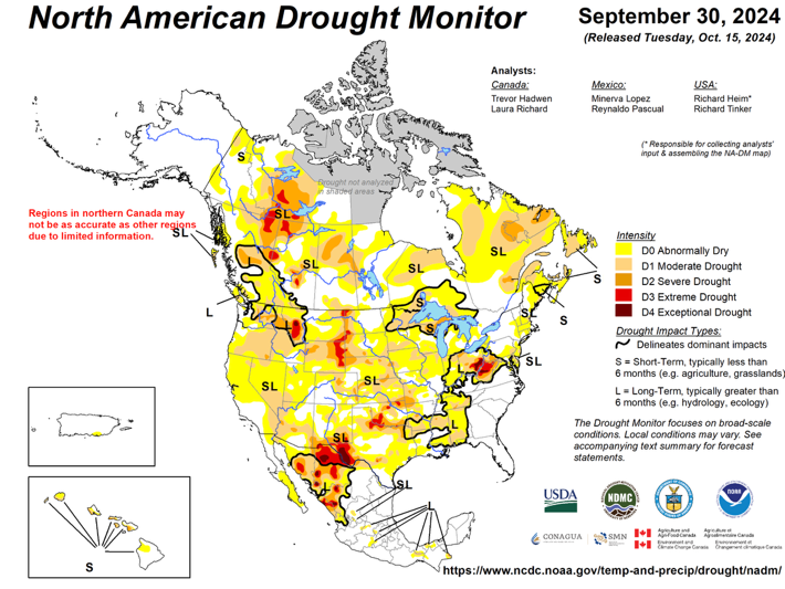 The year 2024 got hotter and drier in the key Upper-Midwestern monarch breeding range as the summer progressed; see drought maps from late July and late September 2024 below.
