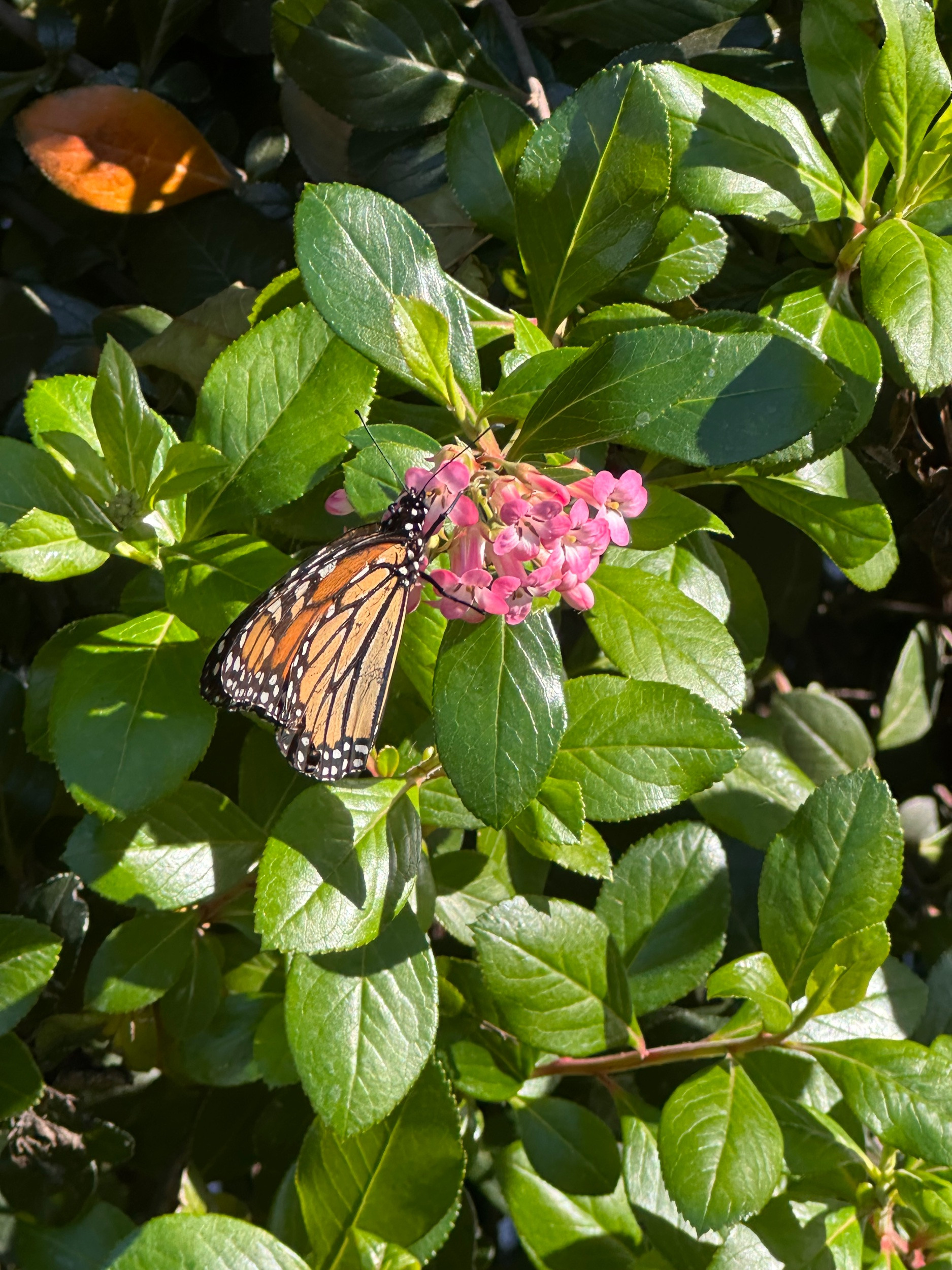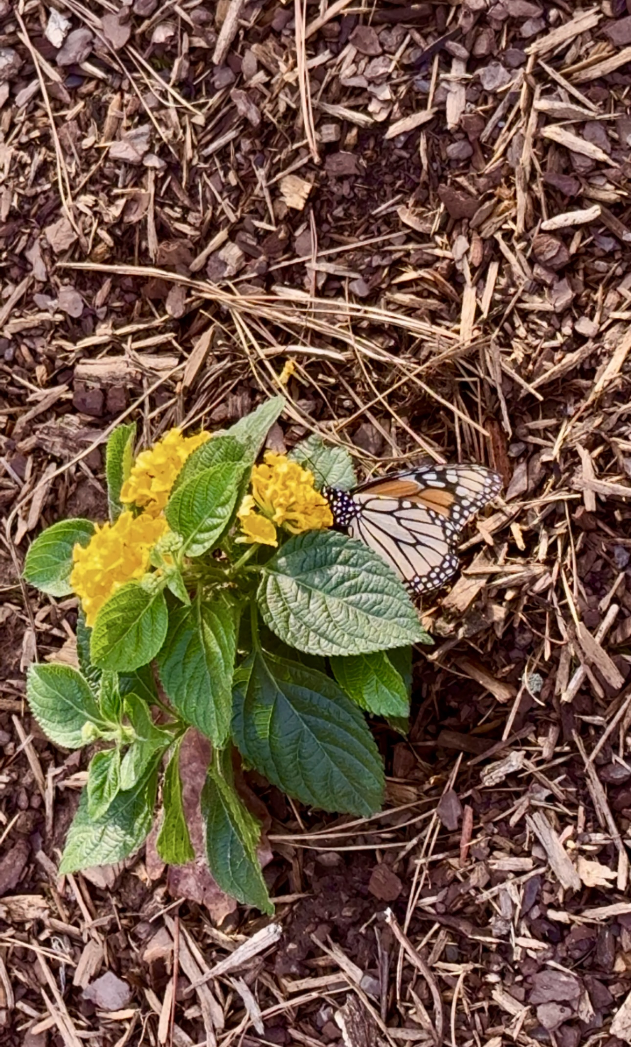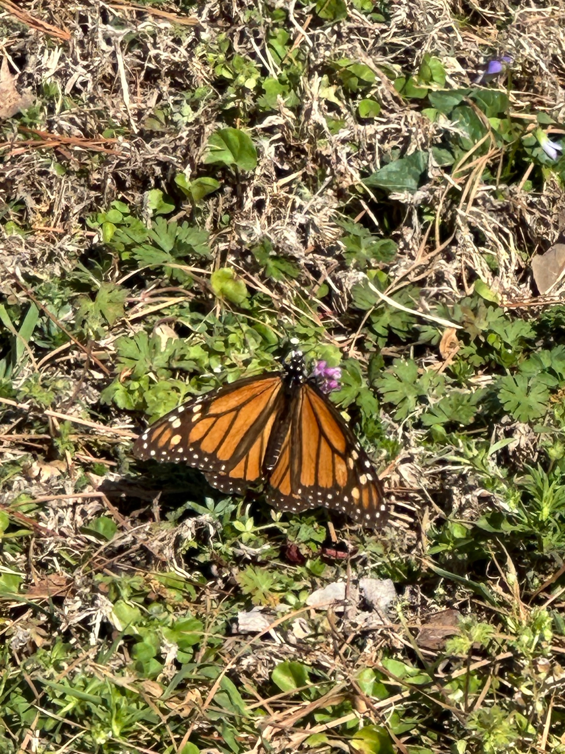 In Phoenix, Anita also saw a monarch visit her yard: “Female flying between rush and Arizona milkweed. Appearing to lay eggs, although I didn’t spot the eggs.”