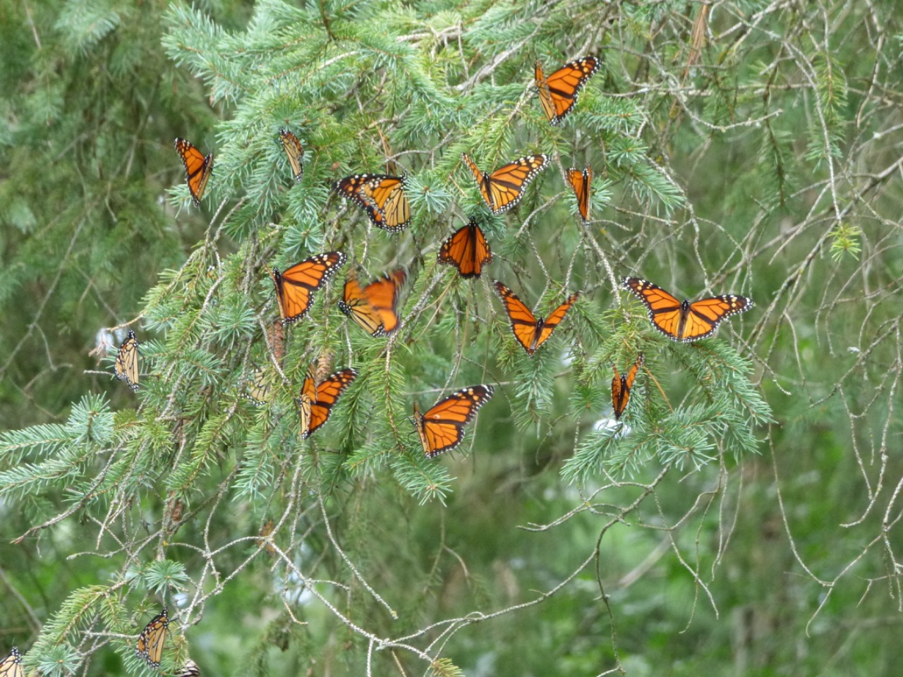 We live in SE Minnesota on the Mississippi River adjacent to 135 acres of planted conservation prairie. Many falls we host monarch roosts along the wooded edge of the prairie. This week the first roost of 2025 has formed with increasing numbers of monarchs each day. The wind is coming from the NW at 15-20 mph.