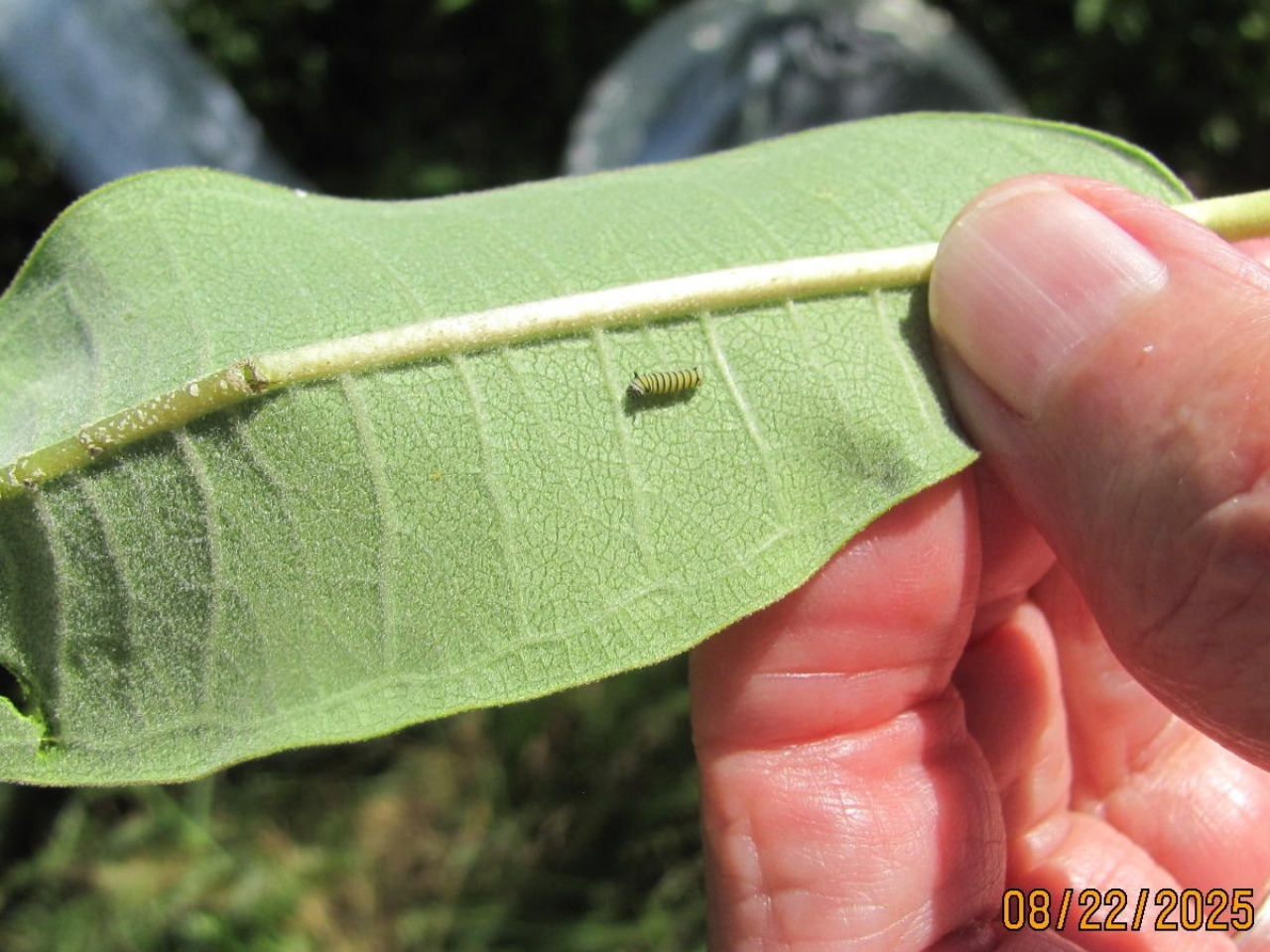 One of the (at least ten) Monarch Caterpillars we found during the afternoon "Marvelous Monarchs" program at Bald Eagle State Park, PA, on Friday, August 22, 2025.