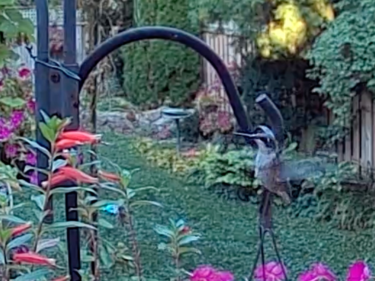 I have not seen a hummingbird since early morning on Oct 1. This one did not visit my feeder, but was nectaring at the cuphea about an hour before sunset. Another exceptionally warm day.