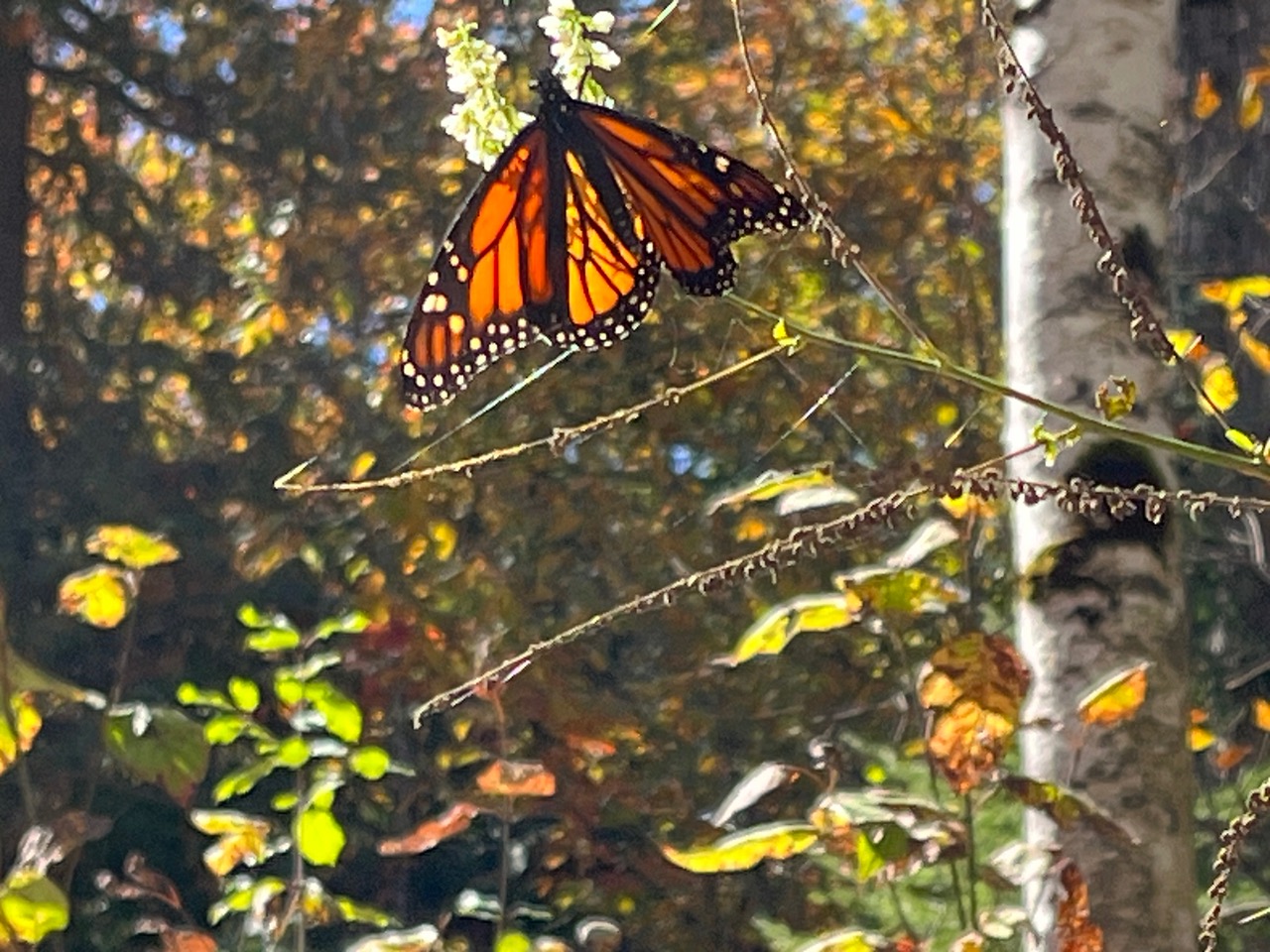 Beautiful Monarch getting nectar from a wildflower on Mackinac Island. A joy to see!