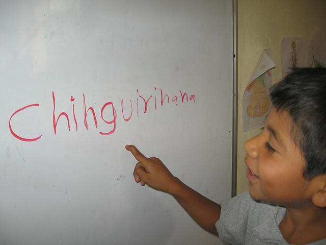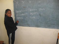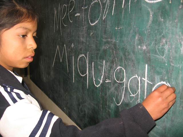 a girl writes some words in hñahñu