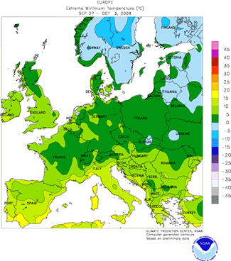 Minimum Temperatures: Sept. 27 - Oct.3 (°Celsius) |