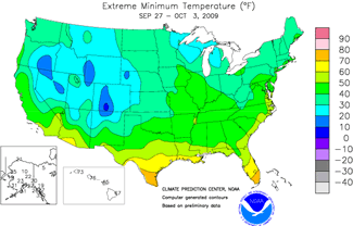 Minimum Temperatures: Sept. 27 - Oct.3 (°Fahrenheit) |