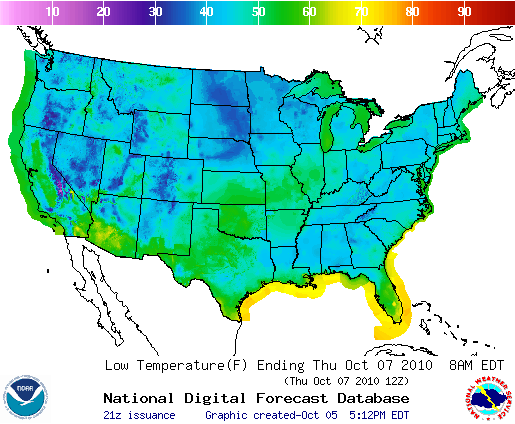 Minimum Temperatures: Oct.7 (°Fahrenheit) |