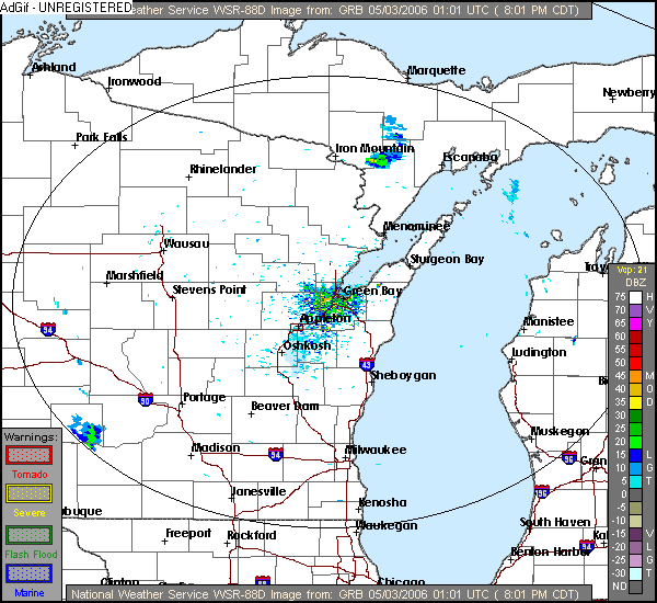 starts about 8:30 PM, and grows after that. Radar readings in Wisconsin